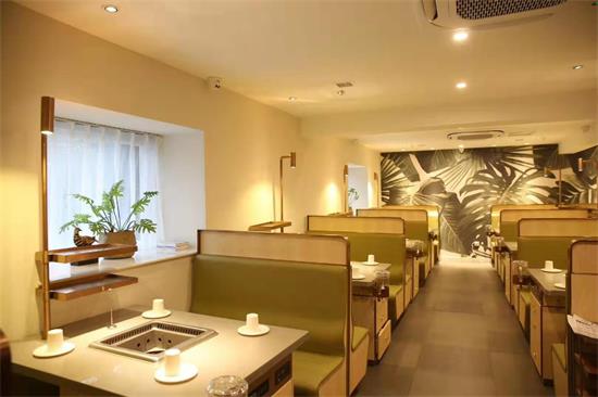 本餐厅还有一个特点,因投资方要求以前的无烟净化设备还要继续使用,且要做到与海底捞火锅桌一模一样。可是海底捞火锅桌用的净化设备是下排风系统,而本餐厅以前每一张火锅桌用的是独立吸烟系统。这样两种设备的区别是在外观上的体积。海底捞的无烟系统是集中排烟,每一张桌子的吸烟设备体积很小,我们在做火锅桌时就要求家具厂给每一张桌子做一个箱体,用来装着吸烟设备。而独立吸烟设备,每一张桌子必须配一个独立吸烟设备,体积大,且用铁箱装起来。如果,我们家具厂再在每张桌子的铁底柜外面再做一个木箱,就会妨碍用餐。顾客的腿没有办法伸直。但为了达到投资方重复利用旧设备节省不必要的投入,我们欧冠轩家具团队给出的方案是,在以前的无烟吸排风系统外框上贴木纹纸。这样既做到了与海底捞火锅店家具一模一样,又为投资方节省了投资费用。
